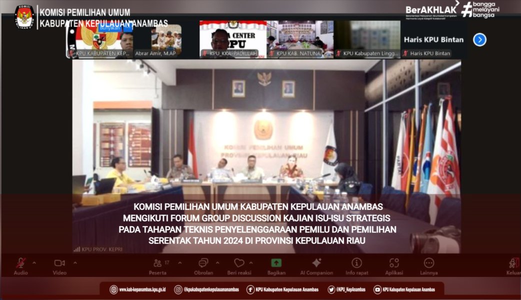 KOMISI PEMILIHAN UMUM KABUPATEN KEPULAUAN ANAMBAS MENGIKUTI FORUM GROUP DISCUSSION (FGD) KAJIAN ISU-ISU STRATEGIS PADA TAHAPAN TEKNIS PENYELENGGARAAN PEMILU DAN PEMILIHAN SERENTAK TAHUN 2024