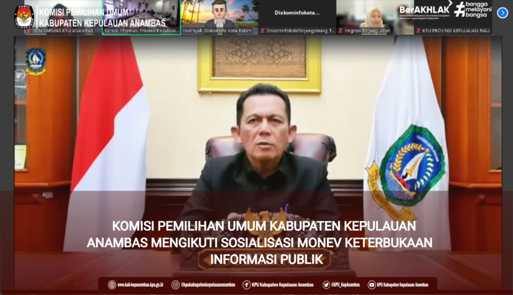 Tarempa, 26 Agustus 2025—Komisi Pemilihan Umum (KPU) Kabupaten Kepulauan Anambas mengikuti Sosialisasi Monitoring dan Evaluasi (Monev) Keterbukaan Informasi Publik Tahun 2025 yang diselenggarakan secara daring oleh Komisi Informasi Provinsi Kepulauan Riau. Kegiatan tersebut diikuti oleh Anggota KPU kabupaten Kepulauan Anambas Gita Jonelva, S.H.I., Sekretaris KPU kabupaten Kepulauan Anambas Barta Oktarius Barus, S.H., M.I.Pol., serta staf sekretariat KPU kabupaten Kepulauan Anambas, bersama 128 badan publik lainnya dari seluruh Provinsi Kepulauan Riau. Sosialisasi tersebut dibuka oleh Ketua Komisi Informasi Kepulauan Riau, Arison, S.H., M.H. Dalam sambutannya, Ketua Komisi Informasi Kepulauan Riau menegaskan bahwa pelaksanaan Monev merupakan amanat Undang-Undang Nomor 14 Tahun 2008 tentang Keterbukaan Informasi Publik. Teknis pelaksanaannya diatur melalui Peraturan Komisi Informasi Nomor 1 Tahun 2021 tentang Standar Layanan Publik dan Peraturan Komisi Informasi Nomor 1 Tahun 2022 tentang Monev KIP. Tujuan dari sosialisasi tersebut adalah memberikan pemahaman teknis kepada badan publik terkait pelaksanaan Monev, sekaligus membekali peserta dalam mengisi Self Assessment Questionnaire (SAQ) atau Kuesioner Penilaian Mandiri yang akan berlangsung selama satu bulan ke depan. Melalui Monev ini, diharapkan badan publik dapat meningkatkan kualitas layanan informasi kepada masyarakat serta mengevaluasi sejauh mana keterbukaan informasi telah diterapkan, sehingga pada akhir tahun mampu menunjukkan hasil yang maksimal dalam pemenuhan standar keterbukaan informasi.
